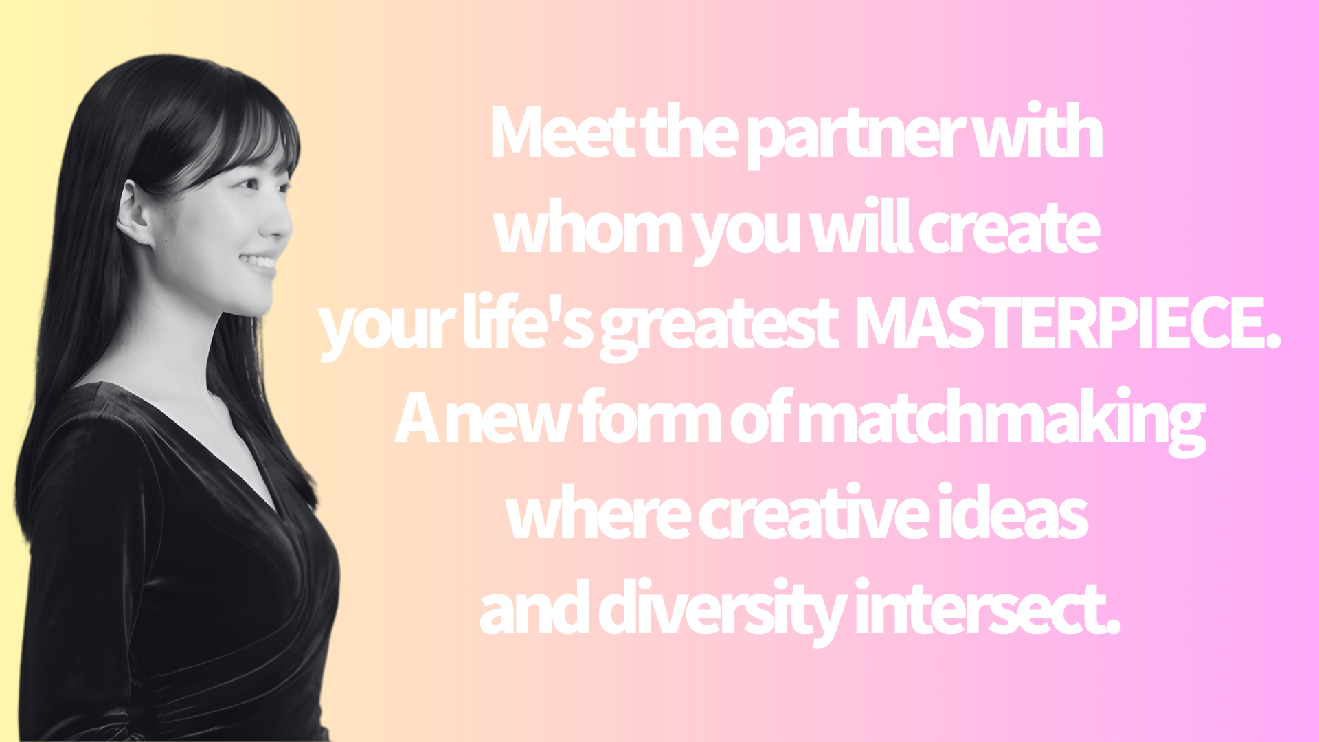 Why do we, who have been creating business and entertainment on the front lines, run a matchmaking agency? It is because we believe that “people connecting deeply” is the most creative act in the world and the greatest energy that moves society.