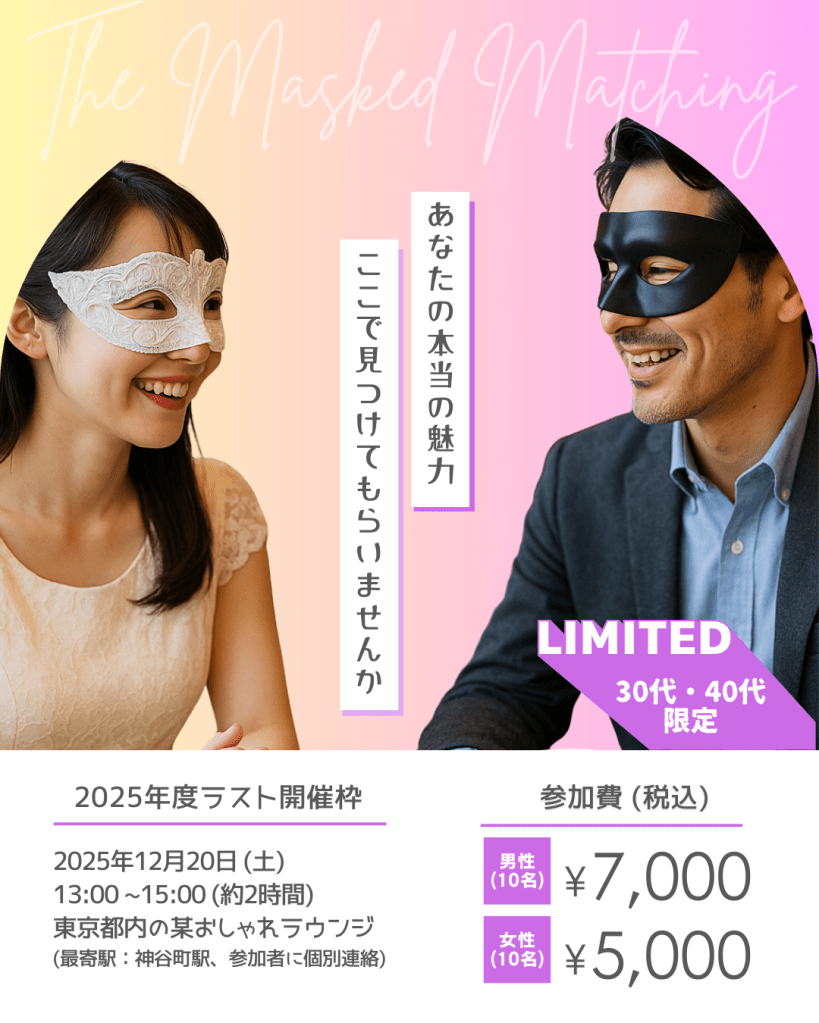 イベント前半は、仮装アイマスクを着用し、「中身の会話」に集中できる時間です。